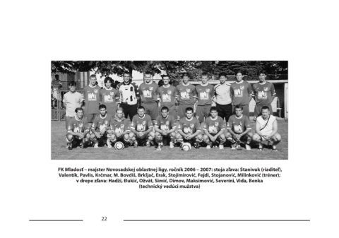 FK Mladosť – majster Novosadskej oblastnej ligy, ročník 2006 – 2007: stoja zľava: Stanivuk (riaditeľ),