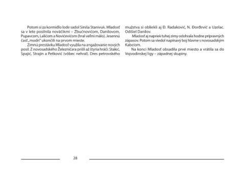 posíl. Z novosadského Železničara prišli až štyria hráči: Stakić, Na konci Mladosť obsadila prvé miesto a vrátila sa do