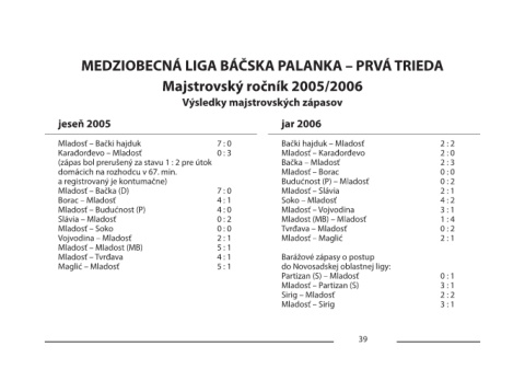 MEDZIOBECNÁ LIGA BÁČSKA PALANKA – PRVÁ TRIEDA