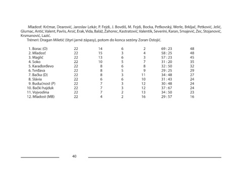 10. Bački hajduk 22 7 3 12 37 : 67 24
