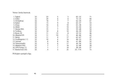 14. Petrovaradín 32 9 6 17 30 : 56 32