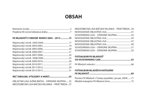 FK MLADOSŤ V OBDOBÍ ROKOV 2003 – 2013 .............15 NOVOSADSKÁ OBLASTNÁ LIGA .................................................45