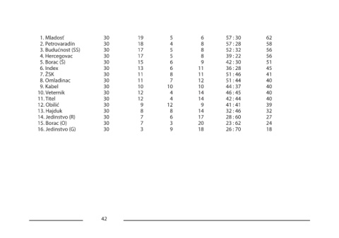 13. Hajduk 30 8 8 14 32 : 46 32